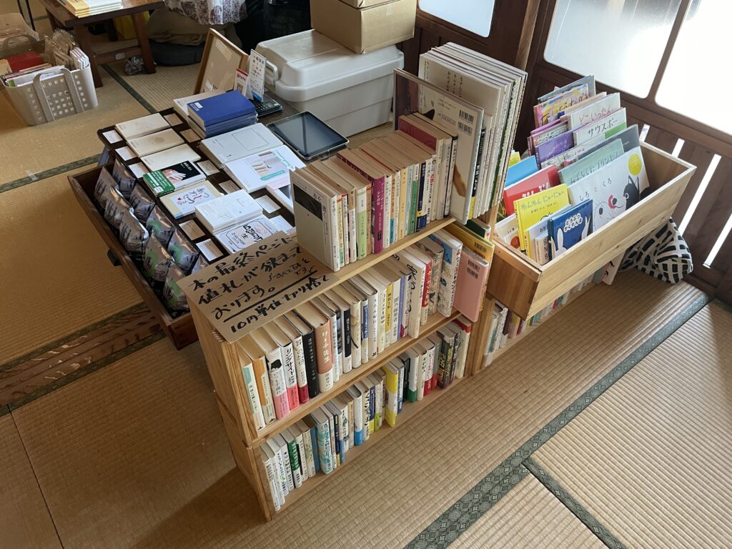 併設する小部屋で不定期に展示を開催。小さな本屋ですが、本に囲まれた空間でゆっくりとした時間を過ごしていただければと思っております。